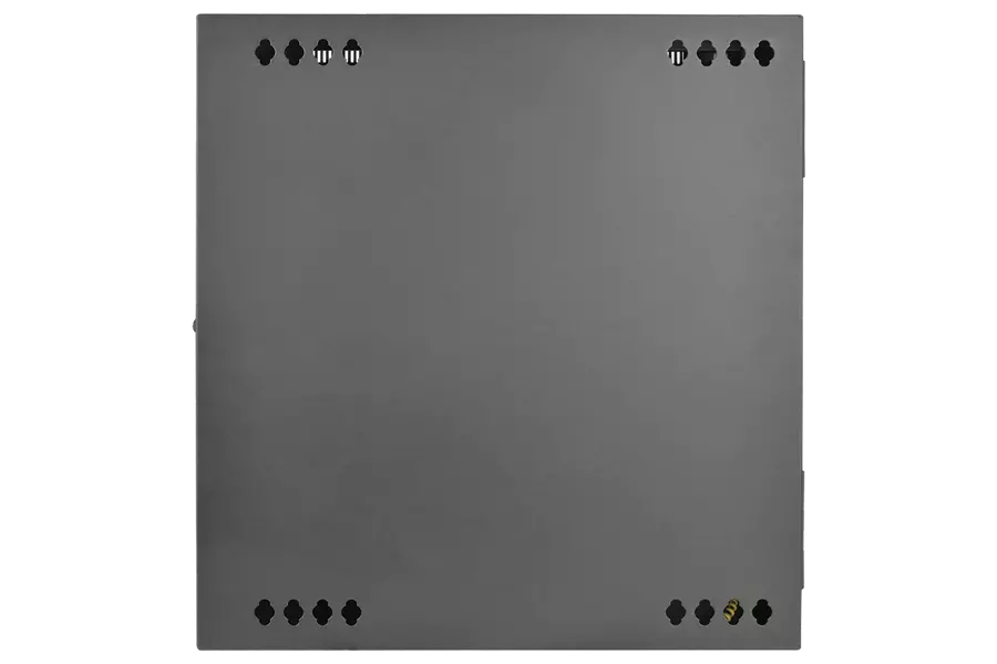 12U Wall mount ECO rack with unbreakable clear acrylic front door (blue color cover on front door is removable plastic cover provided on acrylic to avoid scratches during transport/assy), dismantled and packed in slim box for easy transport and carry.Can be assembled by a single person in just 5 min using a standard screwdriver . Equally rigid as welded structure after assembly.