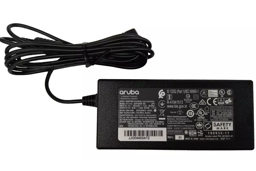 Enquiry Us Contact NowThe HPE Aruba R3K01A is a 48V/50W AC/DC desktop style external power adapter compatible for HPE Aruba AP-303, AP-303H, AP-303P, AP-334, AP-334 FIPS/TAA, AP-334 TAA, AP-335, AP-335 FIPS/TAA, AP-344, AP-345, AP-534, AP-535, AP-555; Instant IAP-334, IAP-335