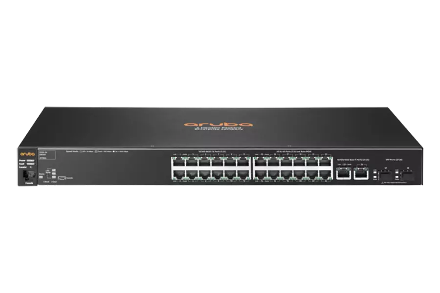 The Aruba 2530 Switch Series offers uplink flexibility with either four Gigabit or two 10 Gigabit Ethernet uplinks on some 24- and 48-port models. The Gigabit 24- and 48-port models have either two small form-factor pluggable plus (SFP+) or four small form-factor pluggable (SFP) slots for fiber connectivity. The Fast Ethernet 24- and 48-port models have two SFPs and two RJ-45 Gigabit uplinks. The compact and fan-less 8-port switches offer additional flexibility with two dual-personality ports that can be used as either RJ-45 Gigabit Ethernet or SFP ports. The PoE+ switch models are IEEE 802.3af- and IEEE 802.3at-compliant with up to 30 W per port, making them suitable for voice, video, or wireless deployments with PoE+