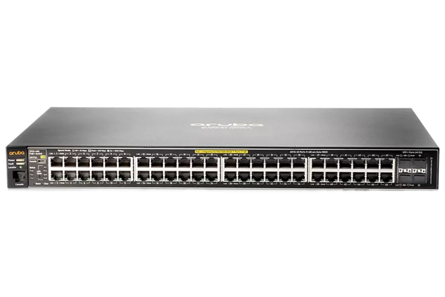 The Aruba 2530 Switch Series offers uplink flexibility with either four Gigabit or two 10 Gigabit Ethernet uplinks on some 24- and 48-port models. The Gigabit 24- and 48-port models have either two small form-factor pluggable plus (SFP+) or four small form-factor pluggable (SFP) slots for fiber connectivity. The Fast Ethernet 24- and 48-port models have two SFPs and two RJ-45 Gigabit uplinks. The compact and fan-less 8-port switches offer additional flexibility with two dual-personality ports that can be used as either RJ-45 Gigabit Ethernet or SFP ports. The PoE+ switch models are IEEE 802.3af- and IEEE 802.3at-compliant with up to 30 W per port, making them suitable for voice, video, or wireless deployments with PoE+