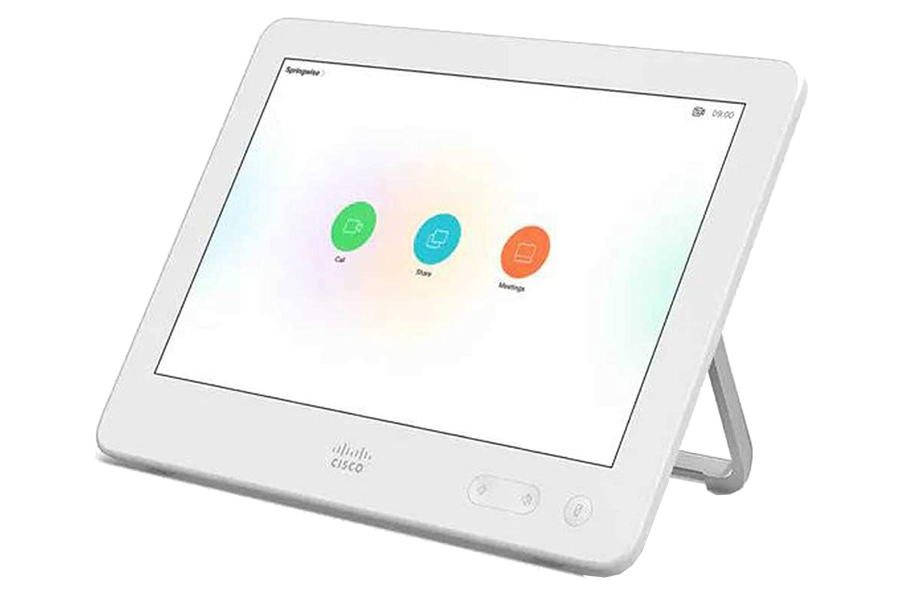 The Touch 10 supports the Cisco Webex Room Series and Webex Board video conferencing devices.