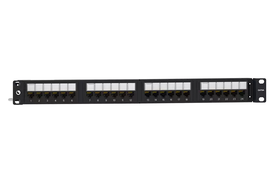 Recessed Angled Distribution Module Panel, Cat 6A, UTP, 1U, 24 port