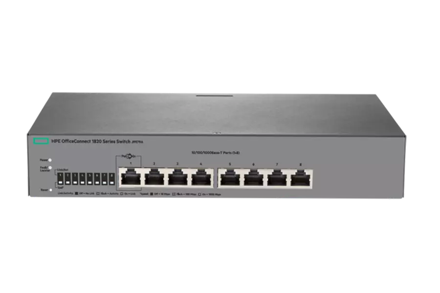 HPE 1820 8G Switch, Web/Semi-Managed, 10/100 Mbps & 10/100/1000 Mbps