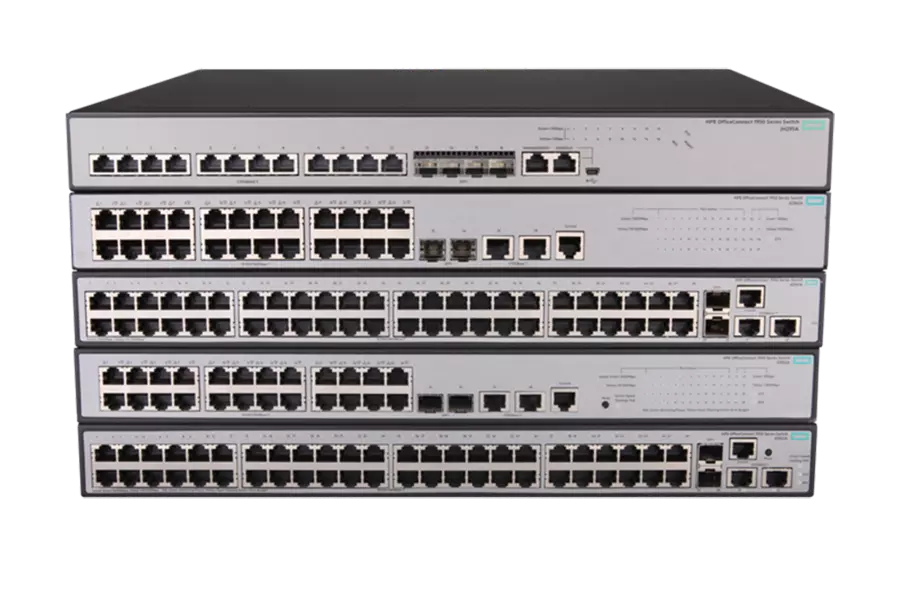 The HP 1950 Switch Series consists of smart web-managed Gigabit Ethernet switches with 10-Gigabit uplinks, for advanced small business customers needing high-performance connections to servers and network storage.
