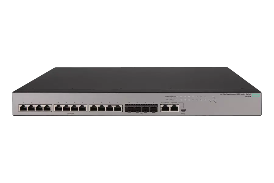 Enquiry Us Contact NowThe HPE 1950 Switch Series is a family of smart web-managed Gigabit switches with 10GbE uplinks for small business customers needing advanced high-performance connections. The series has 2 standard and 2 PoE+ models, 24- and 48-GbE ports, each with 2 10GBASE-T and 2 10G SFP+ high-bandwidth ports.