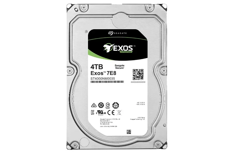 Exos 7E8 hard drives support up to 8 TB per drive,1 offering bulk data storage for data centre infrastructures requiring a highly reliable enterprise hard drive. Exos 7E8 provides costeffective, reliable access to unstructured data. Built on field-proven 10th-generation conventional magnetic recording (CMR) technology, the Exos 7E8 drive helps to catalyse the datasphere, enabling data centre architects and IT professionals to deliver trusted performance, rock-solid reliability, ironclad security, and low TCO for demanding 24×7 operations.