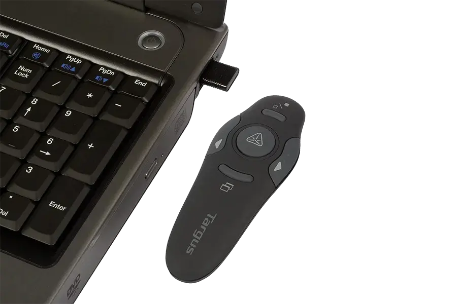 This wireless presenter features a built-in laser pointer that allows users to navigate and control presentations with ease.