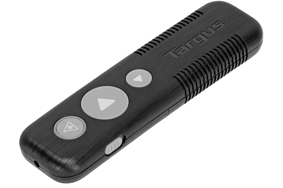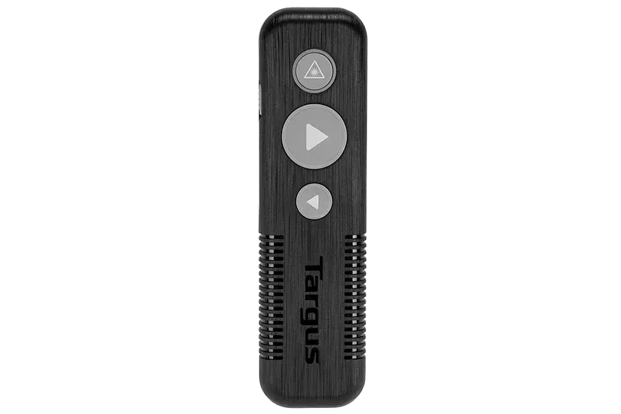 Enquiry Us Contact NowEssential functionality and easy-to-use controls make presenting a breeze with the Targus Wireless Presenter with Laser Pointer. Ergonomically designed for comfort, this handy presentation remote features intuitive button controls for functionality that won’t add muscle strain or distract you from the task at hand. Draw attention to your key points with the built-in high-visibility red laser pointer. Walk freely around the room with a substantial 50-foot operating range. When it’s time to pack things up, the mini USB receiver stores conveniently in the integrated Stow-N-Go® compartment – so it’s always at-hand and ready for next time.