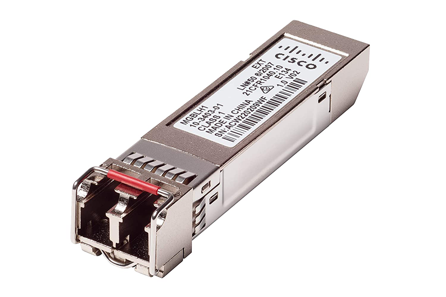 Cisco® MGE Small Form-Factor Pluggable (SFP) or mini Gigabit Interface Converter (mini-GBIC) transceivers are easy-to-install modules that provide a simple way to add fiber connectivity or an extra Gigabit Ethernet port to your Cisco 100, 200, 300, and 500 Series switches. The transceivers are available for single-mode or multimode fiber-optic cabling and can support distances from 100 meters up to 40 kilometers.